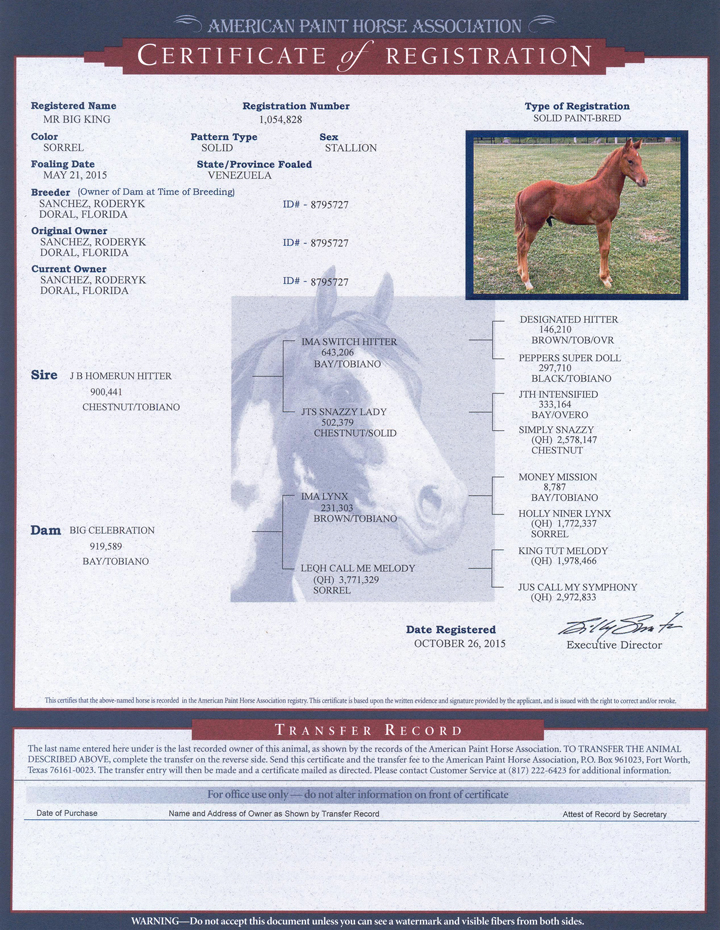 2019 APHA Chestnut Solid Stallion